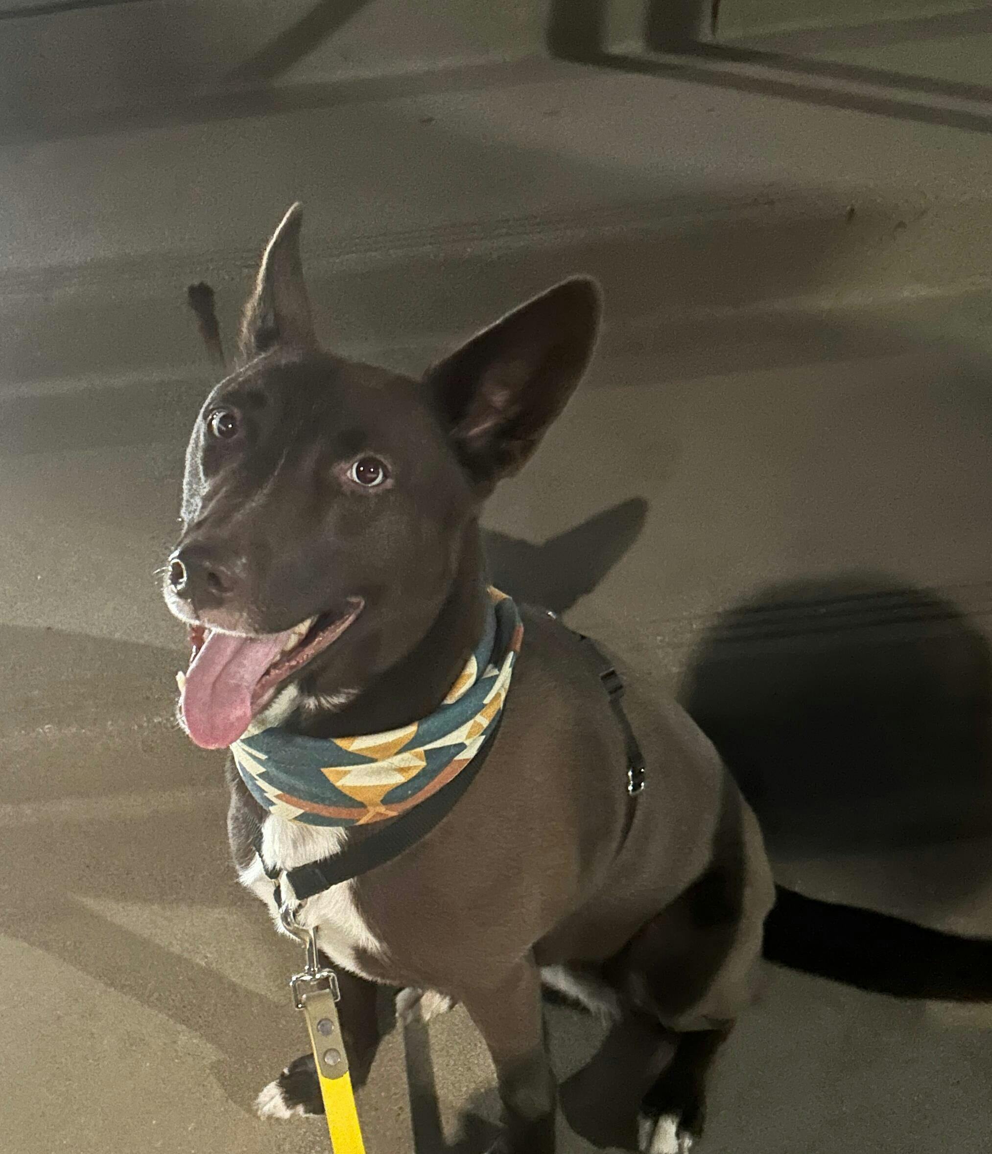 Inspired by crisp alpine mornings and bold mountain horizons, our Shasta Bandeau Scarf brings that snowy getaway energy to every walk. The rich blue Aztec pattern with gold outlining feels adventurous and elevated — perfect for trail days, cabin nights, and holiday photos where your pup deserves to steal the show.