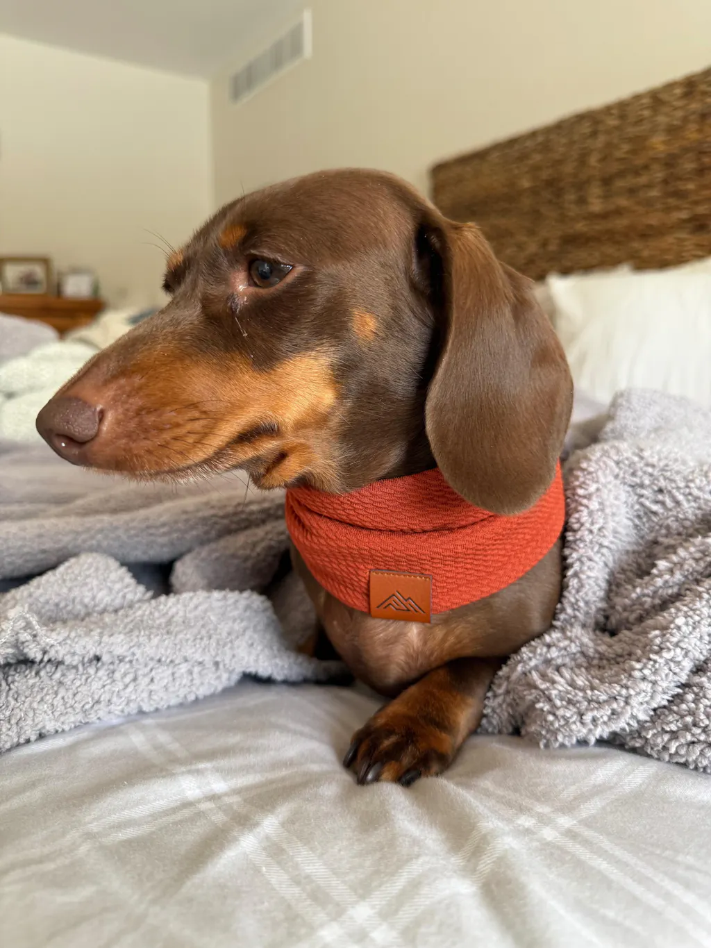 When the weather can’t make up its mind, Pacific Hound has you covered! Our signature Bandeau Scarf is crafted from a lightweight, breathable, and stretchy material—perfect for those in-between seasons when your pup needs just a little something extra. Unique to Pacific Hound and introduced as our flagship product in 2015, each scarf features a built-in twist and loops once around your dog’s neck for a comfortable, effortless fit. Finished with our signature vegan mountain tag, it’s the ideal way to add a pop of personality without the bulk. Just slip it over their head and head out for your next adventure!