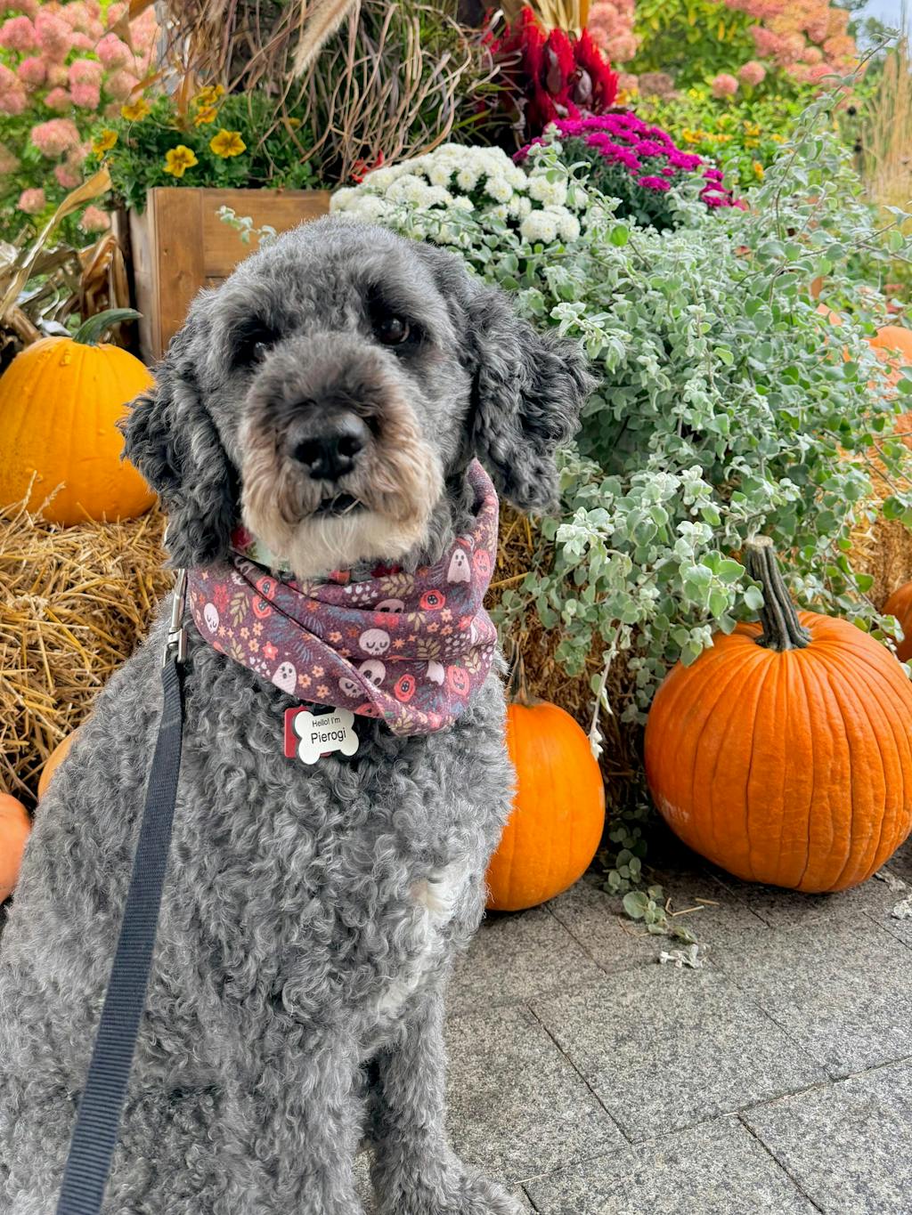Fall colors meet Halloween spirit in our Twilight Bloom Bandeau Scarf—a Pacific Hound exclusive, custom-designed from the deep purple floral print to the cozy, made-just-for-us fabric. This seasonal design features playful ghosts, cheerful pumpkins, and autumn blooms, making it the perfect pick for crisp-weather adventures.