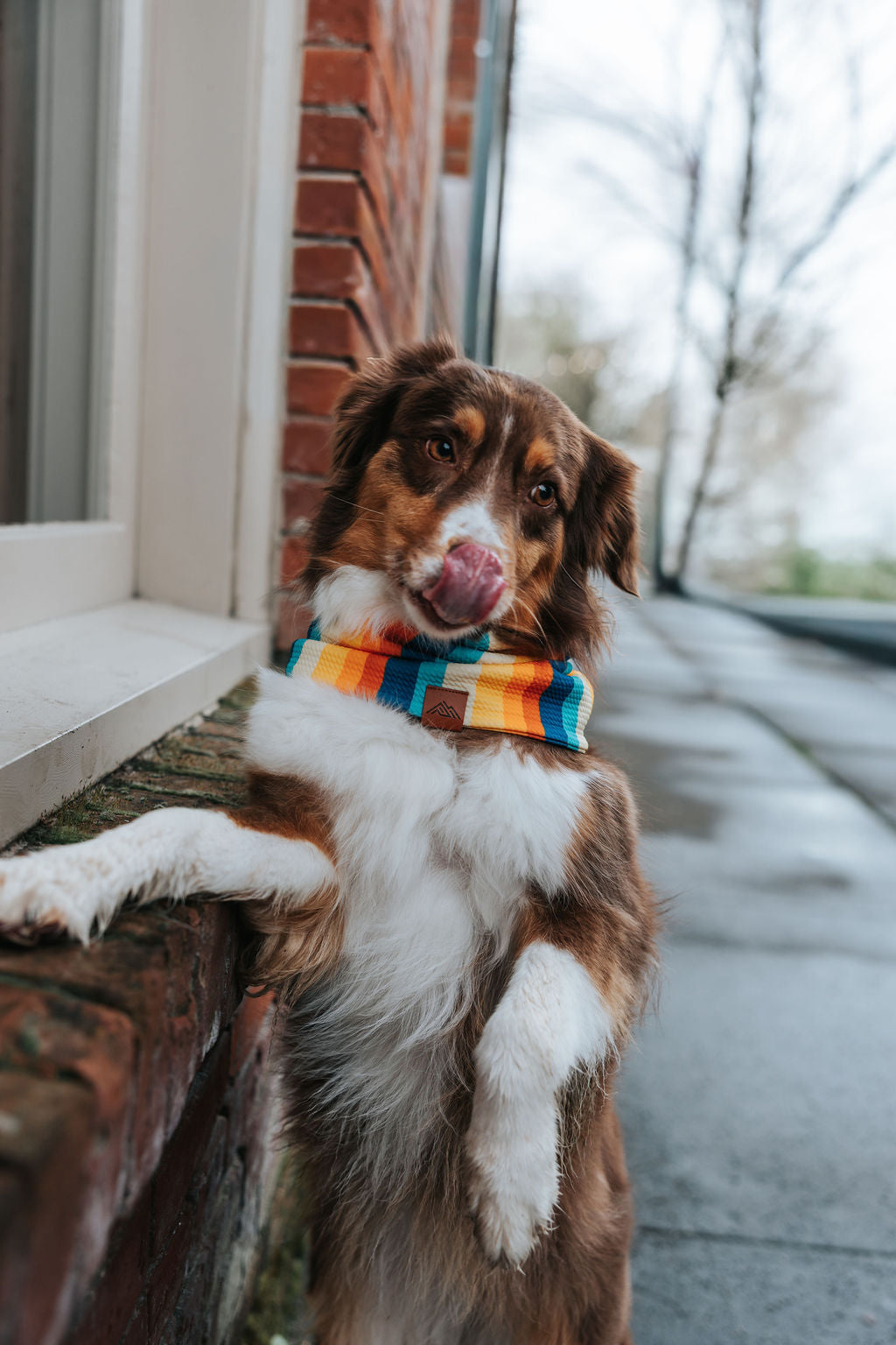 First introduced in 2015 as our flagship product, our signature waffle scarf features a built-in twist that loops once around your dog’s neck for a snug, stylish fit—no snaps, ties, or tricks required. Made from our soft, stretchy waffle fabric, these scarves are lightweight, breathable, and designed to move comfortably with your pup on every adventure. Each scarf is finished with our vegan mountain tag for that touch of rugged Pacific Northwest charm.