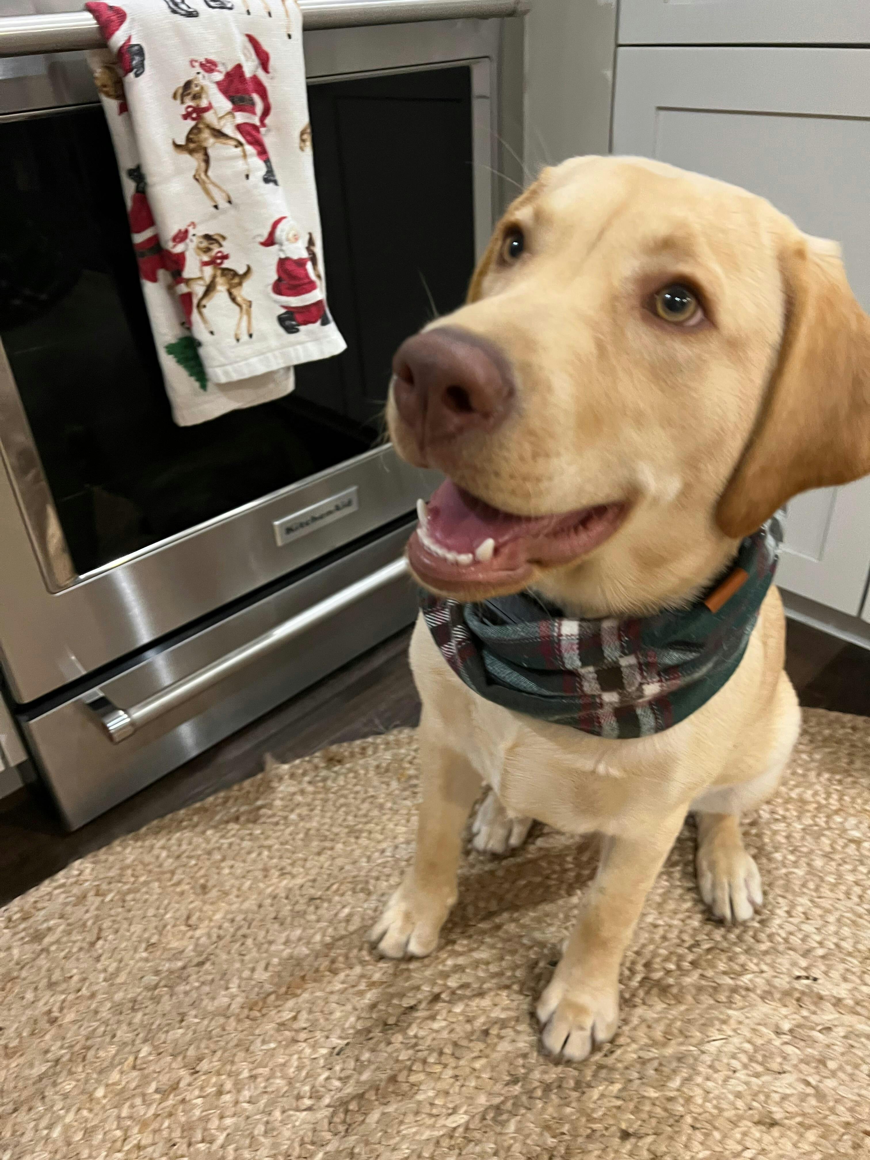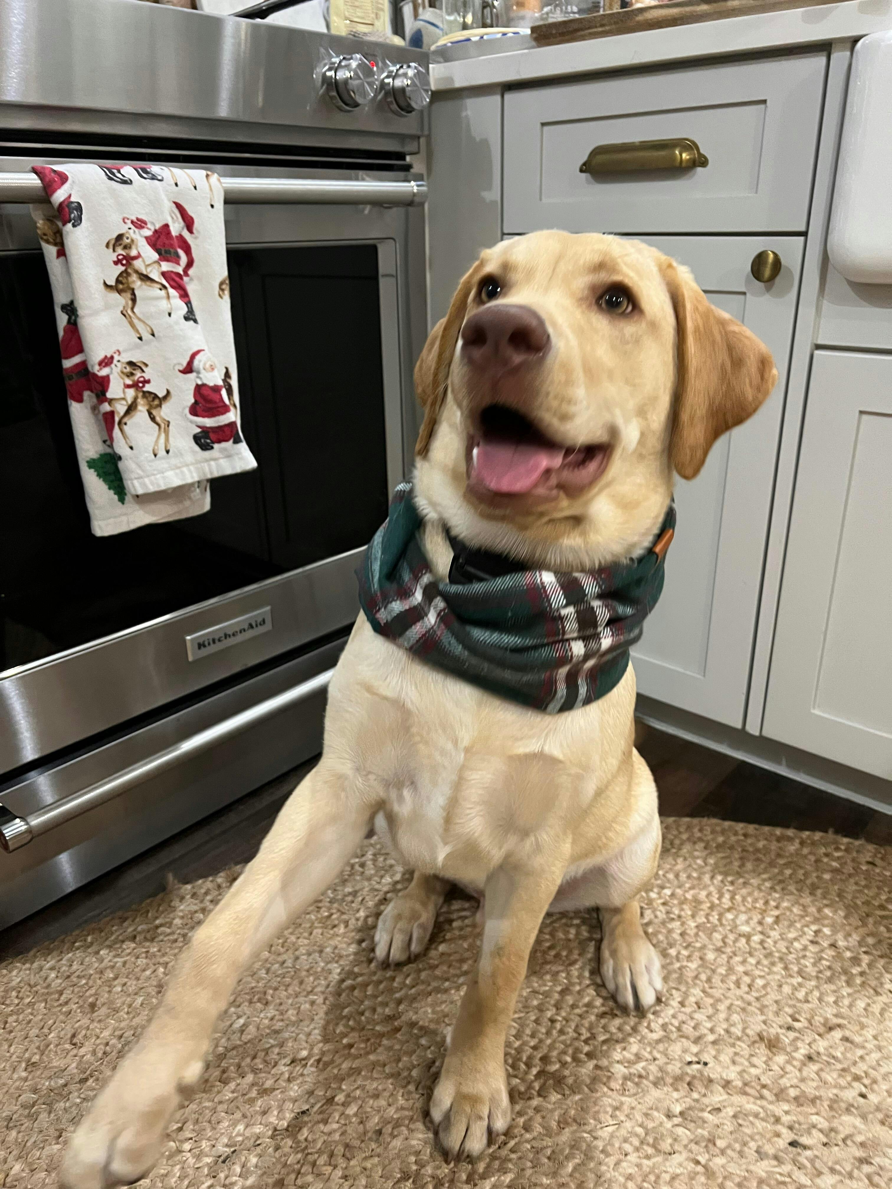 My 5 month old lab puppy looks adorable in his new scarf! Will be ordering more for sure!