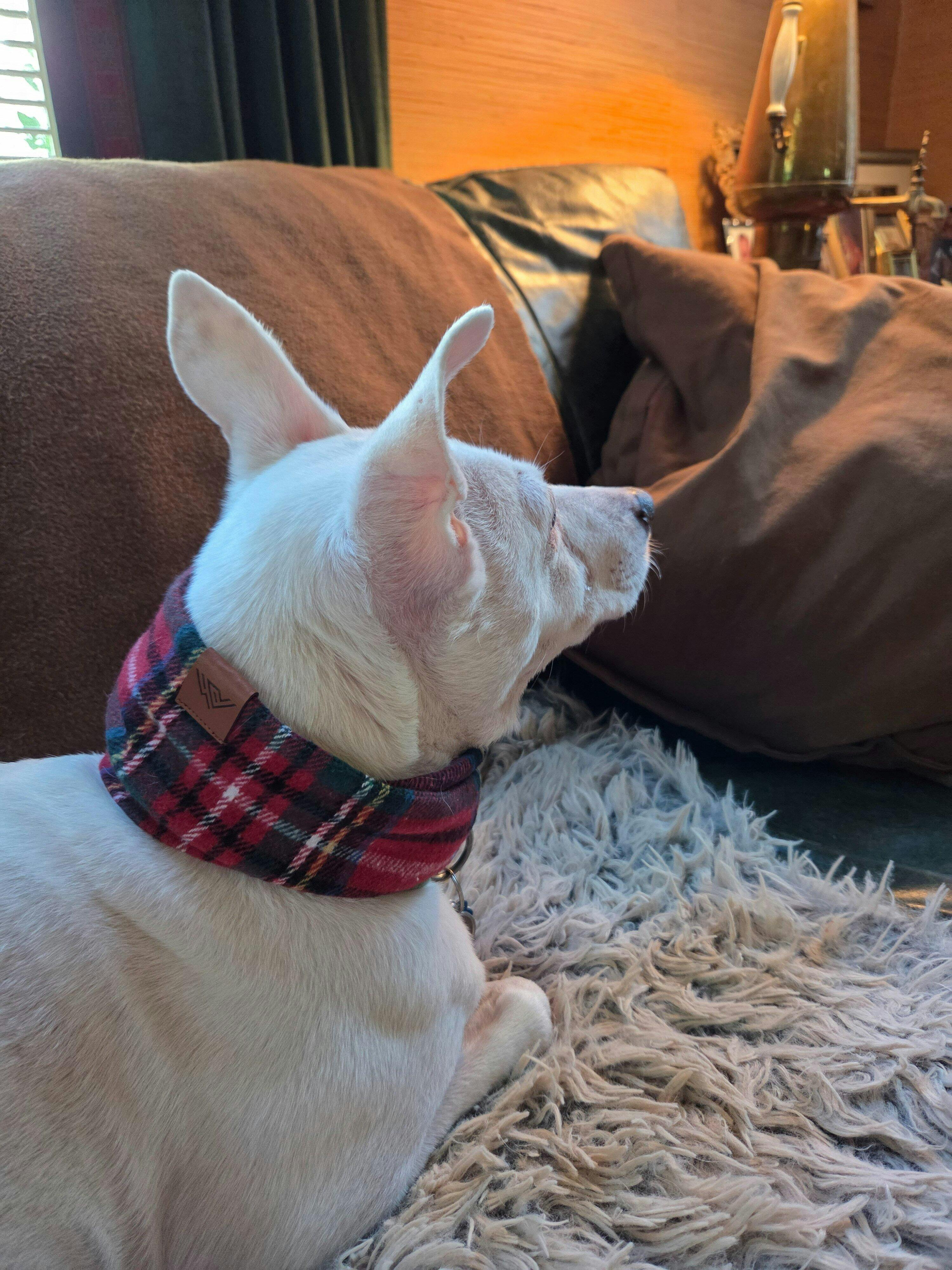 First introduced in 2015 as our flagship product, our signature Bandeau Scarf features a built-in twist that loops once around your dog’s neck for a snug, stylish fit—no snaps, ties, or tricks required. Each scarf is finished with our vegan mountain tag for that touch of rugged Pacific Northwest charm.